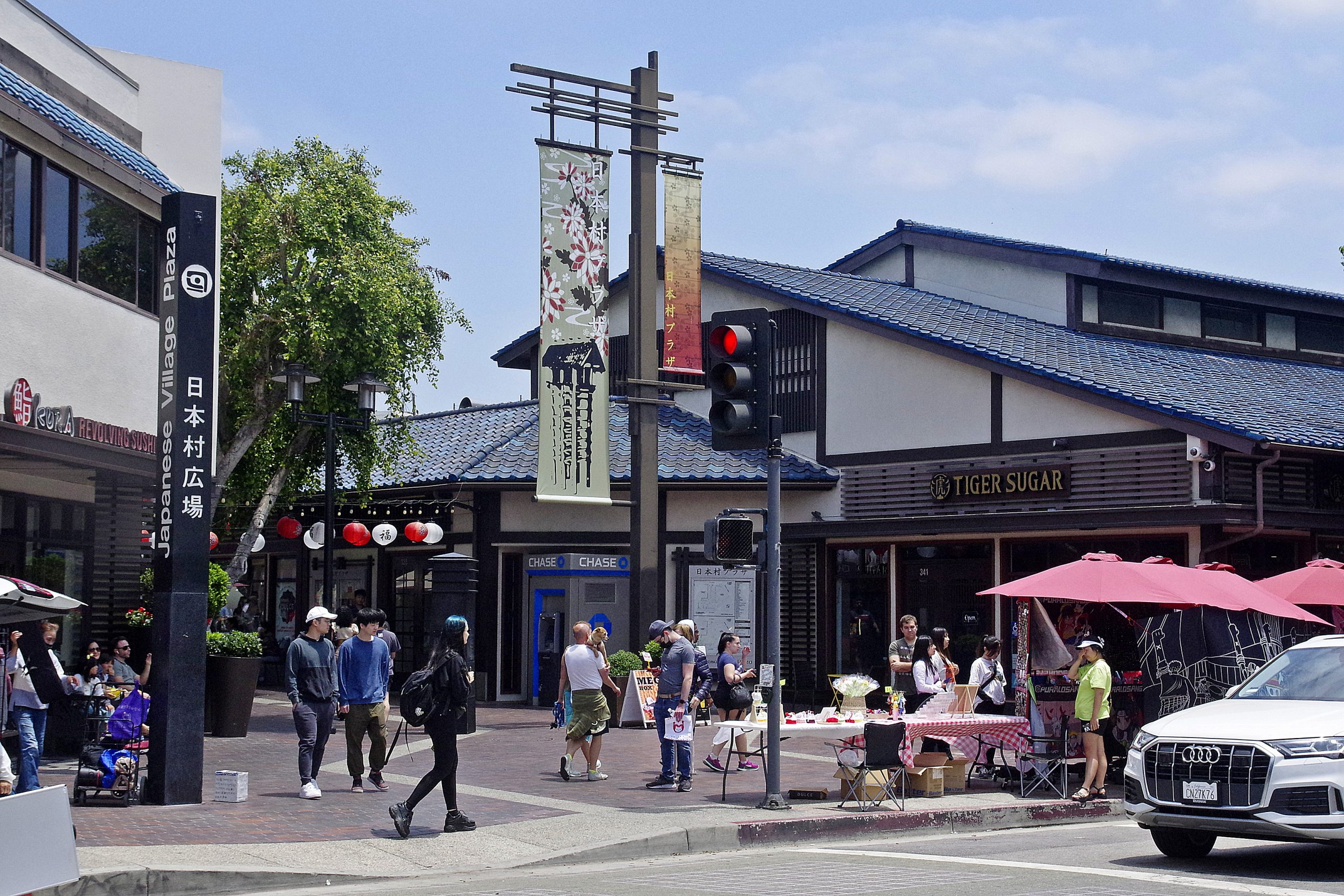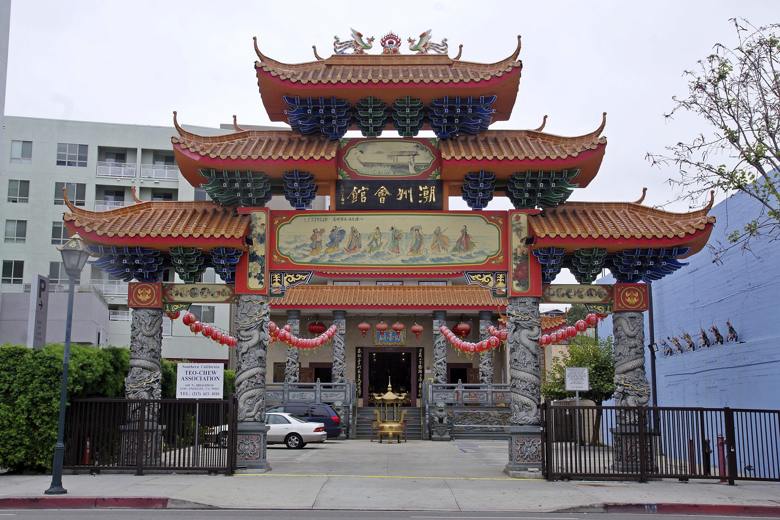 It would be presumptuous to explore the rest of LA today. This city is simply huge. An uber takes me to Chinatown, to the Thien Hau Temple. And I make my first mistake so early in the day: instead of walking one block north from here along N Broadway, I head south towards Chinatown Gateway. That was stupid. I forget about Chinatown Central Plaza. Chinatown without the plaza doesn’t pull herring off the plate. Downtown — From the Chinatown Gateway, continue to Olvera Street. A small street with street vendors. Yes, a tourist trap, but quite picturesque. The area is called El Pueblo de Los Ángeles, and is the old city center of Los Angles. The small pedestrian street ends at Plaza Olvera. There are many old buildings here. A little to the east is Los Angeles Union Station. Just a few meters away, the street chaos of the 101 of modern LA awaits me: multi-lane roads and lots of traffic. City Hall awaits on the other side. The building is familiar from movies and television. I walk through Grand Park up to Grand Ave. This is probably the cultural center of LA. In front of me are the Ahmanson Theatre, the Mark Taper Forum and the LA Opera House. To the left is the Walt Disney Concert Hall. As in Bilbao, the outer skin is made of metal. And as in Bilbao, this results in thermal side effects on the street in front of the building. A large part of the metal surfaces had to be sanded down so that they no longer reflect. Honestly, the mistake was a foregone conclusion. Next to the Concert Hall is The Broad, an art museum. Not for me. I walk on to the Angels Flight. A short incline (33% gradient) that takes you down to Hill St. The original location was a few meters to the east. And you can tell. The rails rest on concrete sleepers and don’t match the design of the 1901 carriages at all.2. Here is the city center of LA, which you often see as an aerial view today. Here are the skyscrapers I saw yesterday from the Griffith Observatory. To the north is Highway 110, which crosses the 101 a little to the east. Unlike Tokyo, I’m somehow not interested in skyscrapers, roads and concrete. Maybe Chicago is to blame. It was so refreshingly different. And Tokyo is simply Tokyo. I walk down the stairs next to the Angel Flight, but I can’t find a good photo position. The Grand Central Market is waiting at the bottom. Well. Big is an exaggeration. A bit more than the Kleinmarkthalle in Frankfurt, I’d say. I walk to Japan Village for lunch and pass two huge murals: the Village is a pedestrian zone between 1st St and 2nd St. Wow, there really is a 1st Street here. The choice falls on Rakkan Ramen in said 1st Street. Lunch is ramen, takoyaki, sake and a big highball (stay hydrated!). I hereby declare my downtown adventure over. There’s nothing exciting left on my list and I’m not going back to Chinatown now. I call an uber to take me to Rodeo Drive. It looks so close on the map. In reality, it’s over 10 miles (16 km). It would be almost another 10 miles to the beach (Santa Monica). Downtown LA to Long Beach: 20 miles. I still underestimate the size of LA. LA is bigger than Tokyo.DEU