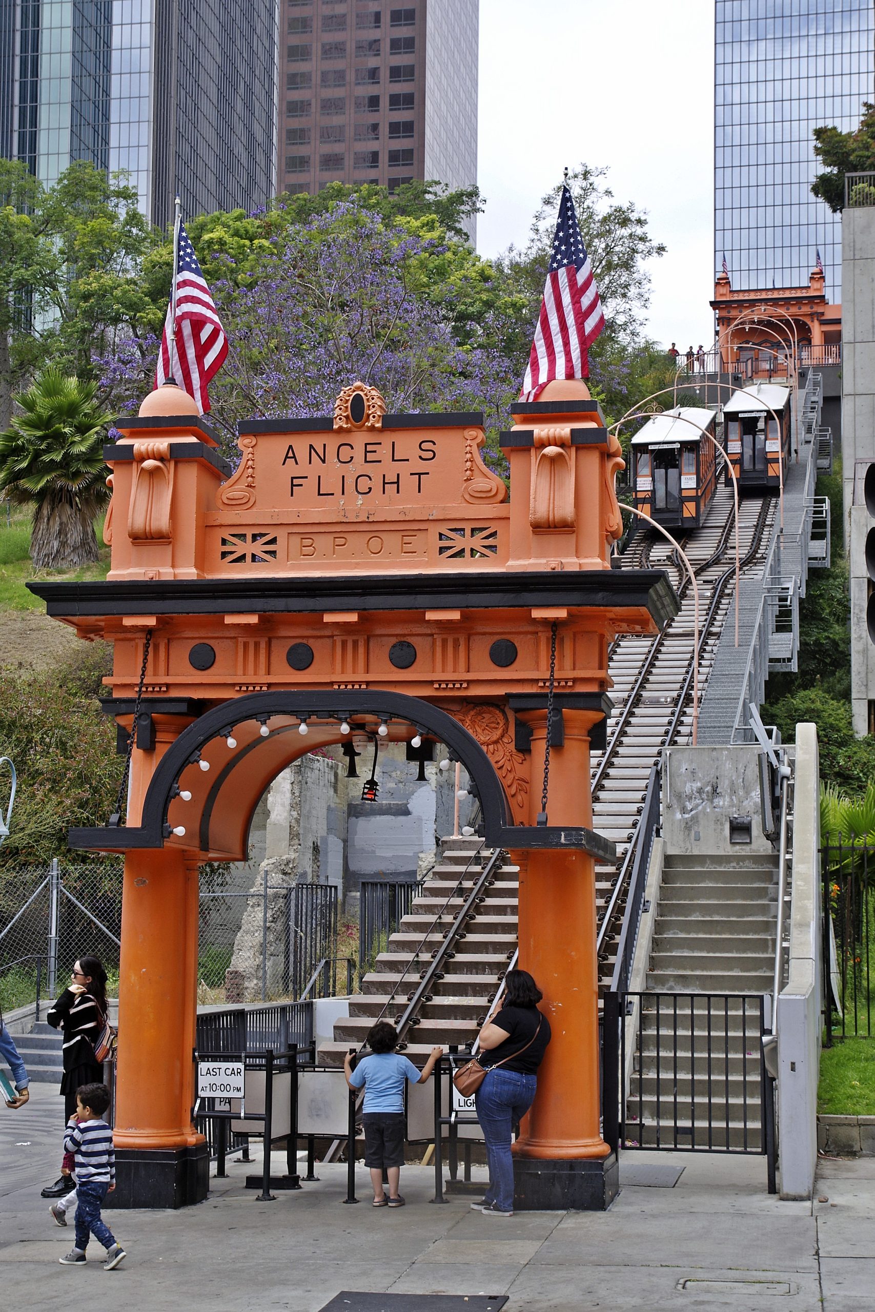 Heute den Rest von LA zu erkunden, wäre vermessen. Diese Stadt ist einfach riesig. Ein uber bringt mich nach Chinatown, zum Thien Hau Temple. Und bereits so früh am Tag mache ich den ersten Fehler: Anstatt von hier entlang N Broadway einen Block nach Norden zu gehen gehe ich nach Süden in Richtung Chinatown Gateway. Das war dämlich. Ich vergesse Chinatown Central Plaza. Chinatown ohne die Plaza zieht keinen Hering vom Teller. Downtown — Vom Chinatown Gateway geht es weiter zur Olvera Street. Ein kleine Straße mit Straßenhändlern. Ja, Touristenfalle, aber ganz pittoresk. Die Gegend heißt El Pueblo de Los Ángeles, und ist das alte Stadtzentrum von Los Angles. Die kleine Fußgängerstraße endet an der Plaza Olvera. Hier stehen viele alte Gebäude. Etwas östlich ist die Los Angeles Union Station. Nur ein paar Meter entfernt wartet das Straßenchaos der 101 des modernen LA auf mich: mehrspurige Straßen und viel Verkehr. Auf der anderen Seite wartet City Hall. Das Gebäude kennt man aus Film und Fernsehen. Ich laufe durch den Grand Park hinauf zur Grand Ave. Das hier dürfte das kulturelle Zentrum von LA sein. Vor mir sind das Ahmanson Theatre, das Mark Taper Forum und das Opernhaus von LA. Links davon die Walt Disney Concert Hall. Wie in Bilbao ist die Außenhaut aus Metall. Und wie in Bilbao ergeben sich dadurch thermische Nebenwirkungen auf der Straße vor dem Gebäude. Man musste einen Großteil der Metallflächen abschleifen, damit sie nicht mehr spiegeln. Ganz ehrlich, der Patzer war mit Ansage. Neben der Concert Hall steht The Broad, eine Kunstmuseum. Nix für mich. Ich laufe weiter zu den Angels Flight. Eine kurzen Schrägbahn (Steigung 33%), die einen runter zur Hill St bringt. Der ursrüngliche Standort war ein paar Meter östlich. Und das merkt man. Die Schienen lagern auf Betonschwellen und passen gar nicht zum Design der Wagen von 1901.1